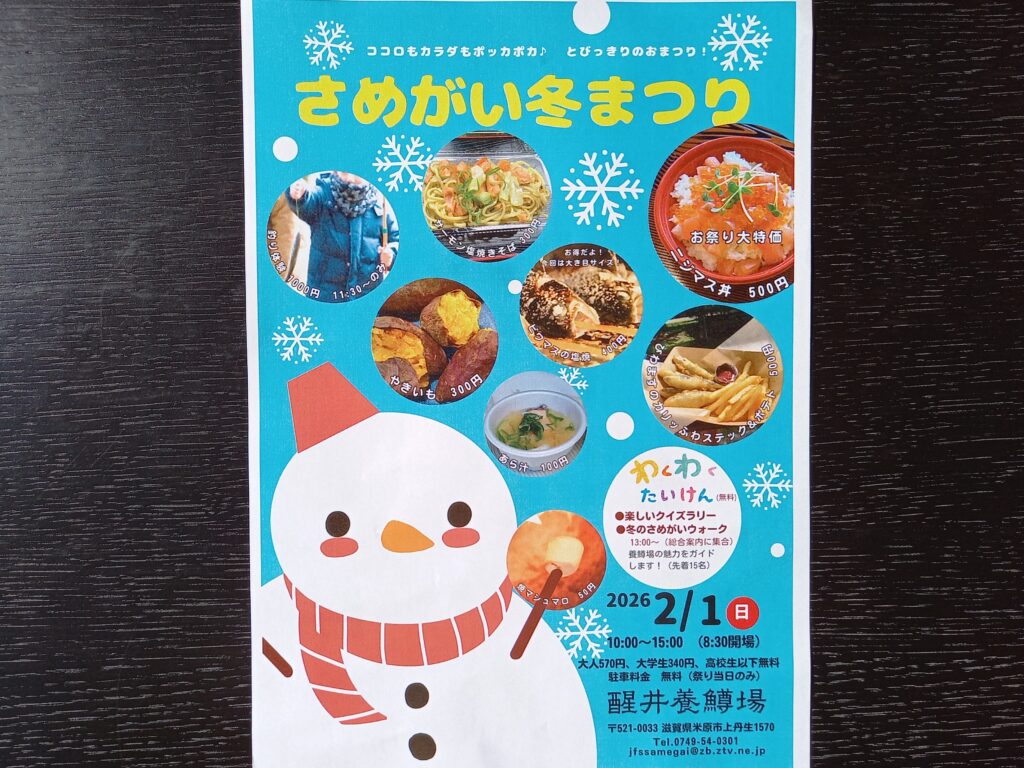 2月1日(日曜日)、醒井養鱒場にて『冬まつり』が開催されます。