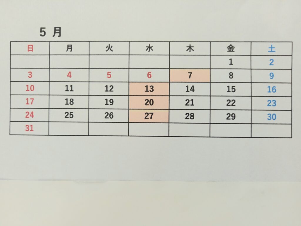 ゴールデンウィークの営業日につきまして、 通常は、水曜日を定休日としておりますがこの期間は